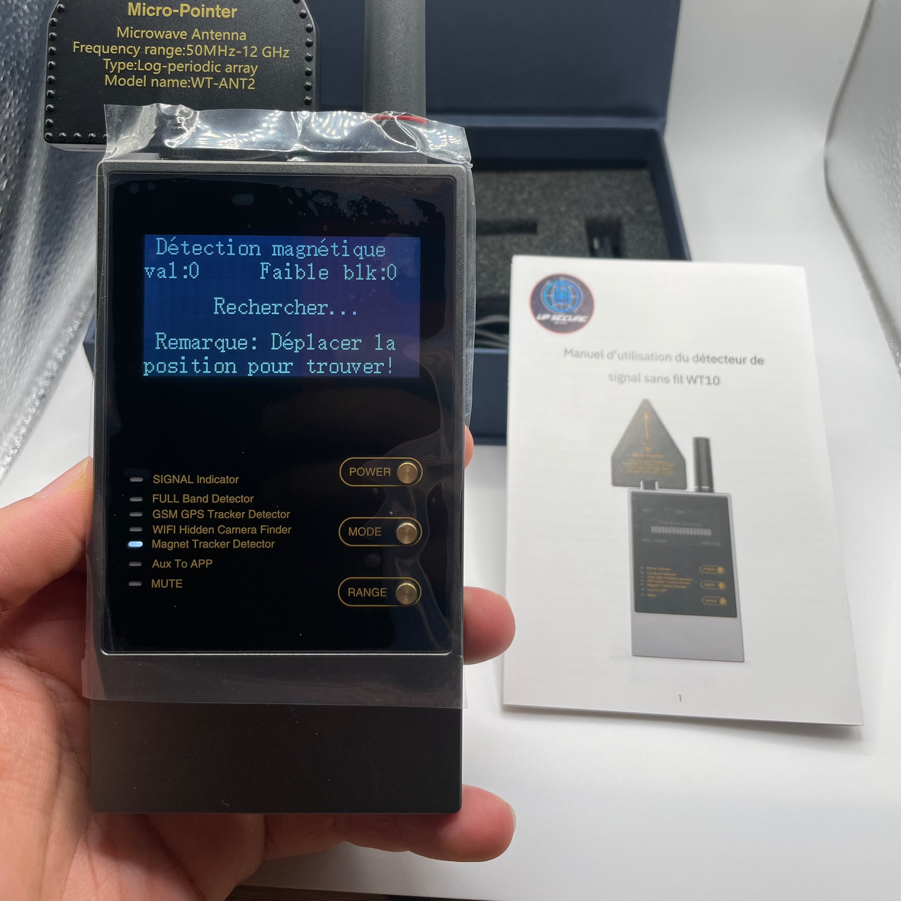 Le Détecteur WT-10 a pour fonctionnalité de repérer les mouchards (GPS/CAMÉRAS WIFI/TRACEUR) Vous pouvez emmener ou que ce soit votre détecteur WT-10 portable et de taille compacte que ce soit en vacance pour vérifier si votre location habitable ne dispose pas de caméras cachées, ou bien regarder si votre voiture n'est pas tracée par des personnes malveillantes à votre encontre.