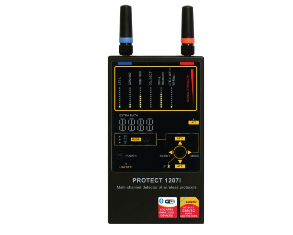 Détecteur RF portable conçu pour localiser rapidement les micros sans fil, traceurs GSM, caméras espion, appareils émettant en Bluetooth, Wi-Fi et autres signaux numériques. Un outil compact, fiable et extrêmement efficace pour inspecter des bureaux, logements, véhicules ou salles confidentielles.